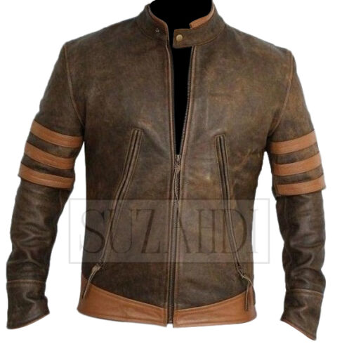 This stylish motorcycle jacket is inspired by X-Men Wolverine Origins Hugh Jackman leather jacket has countless details, setting it apart from similar jackets: half-arm stripes, dropped kidney panel, shoulder and elbow stitching, gold-trimmed collar, and contoured cuffs with gold internal storm flaps.